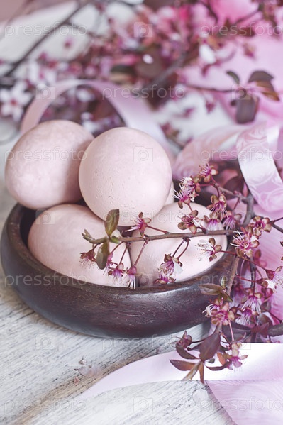 Розовые пасхальные яйца с цветами