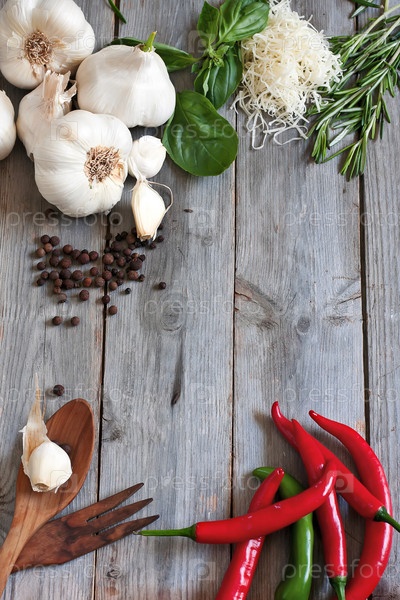 Чеснок, перец, базилик, розмарин и пармиджано