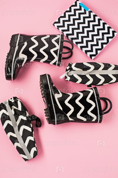 Черно-белые резиновые сапоги и аксессуары