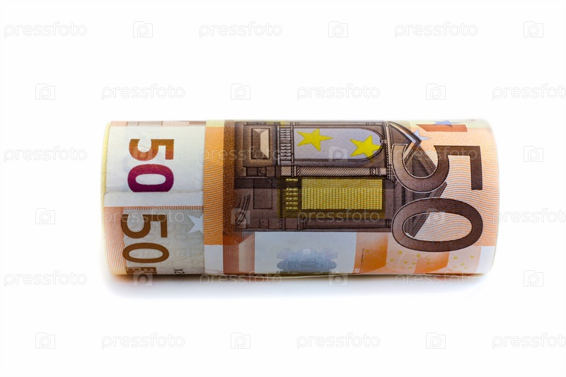 Купюра достоинством 50 евро на белом фоне