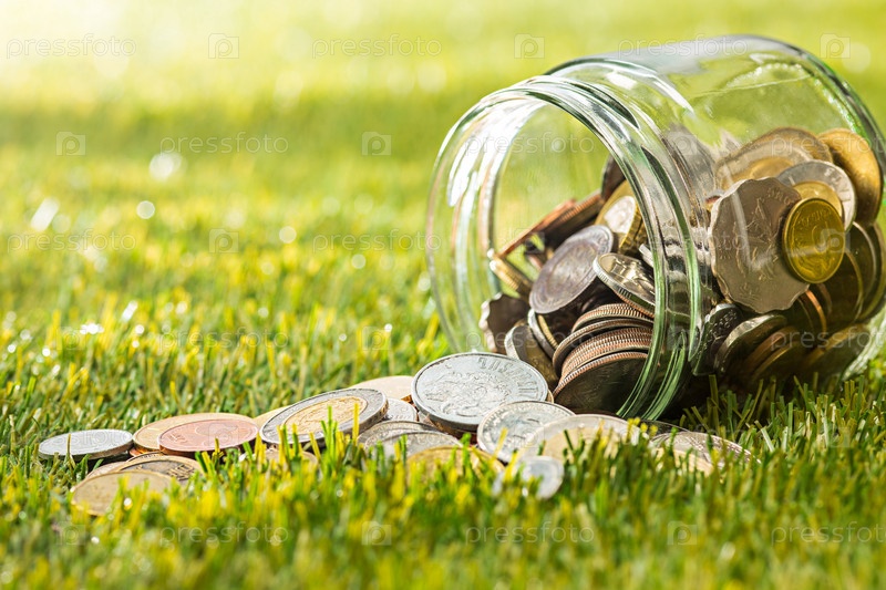 Монеты в стеклянной банке