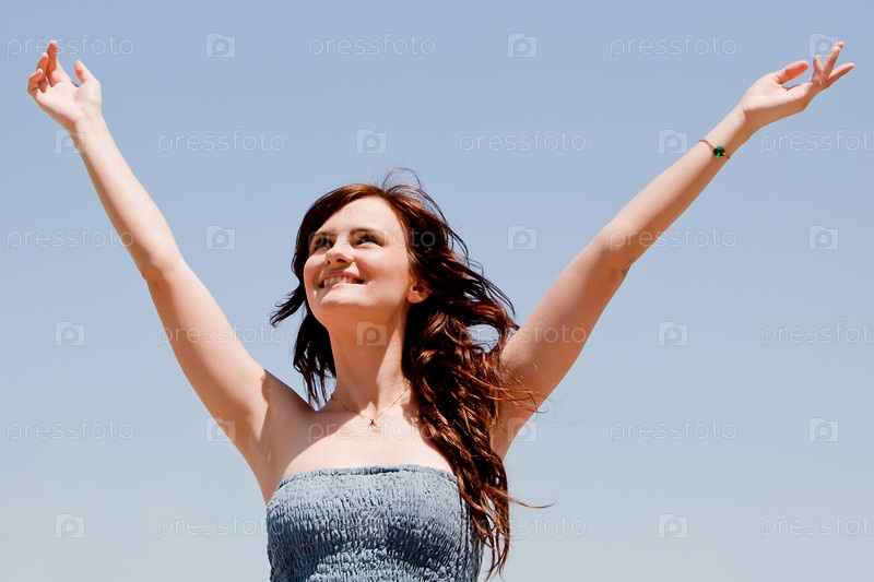 Счастливая девушка на фоне неба