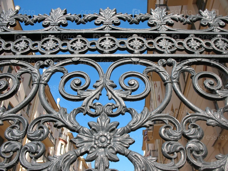 Решетка ограды на фоне голубого неба. Санкт-Петербург