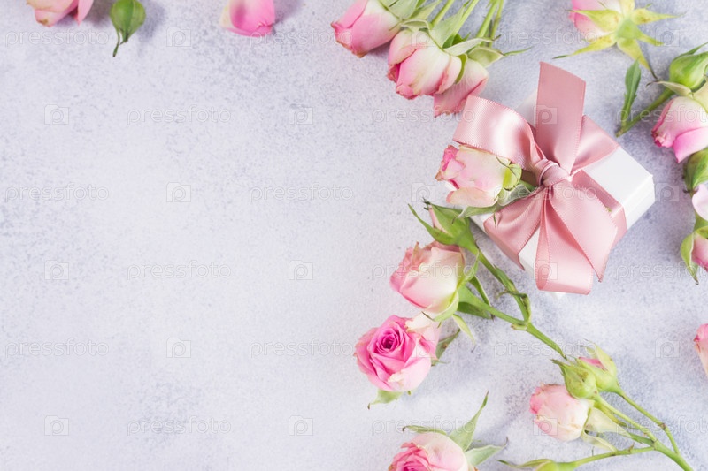 Подарочная коробка и цветы