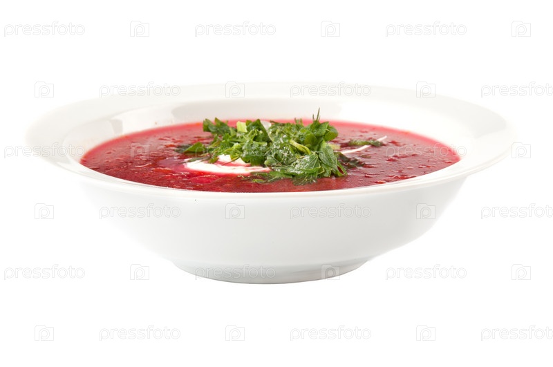 Красный борщ со сметаной и петрушкой