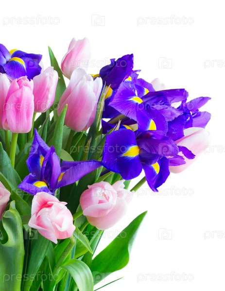 Синие ирисы и тюльпаны