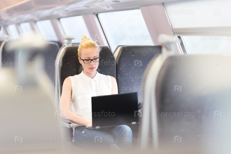 Женщина в поезде с ноутбуком