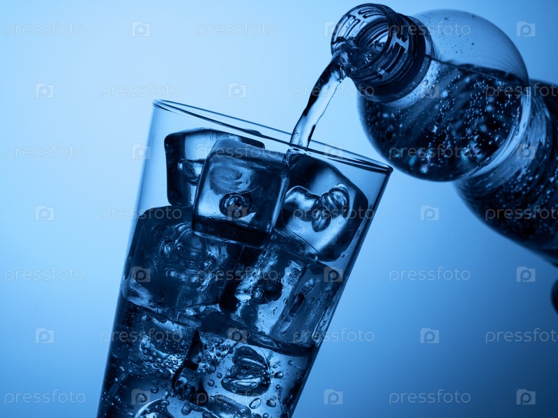 Пластиковая бутылка и стакан со льдом