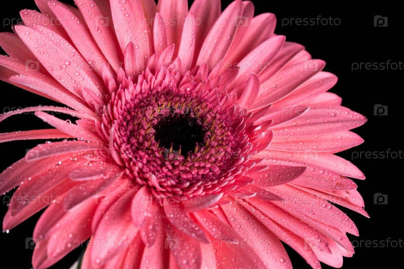 Розовая гербера с каплями воды