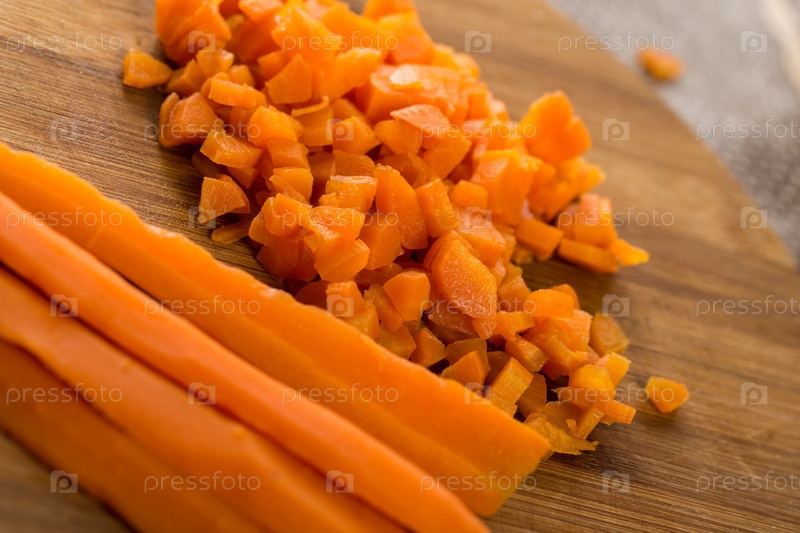 Нарезанная морковь на деревянной доске