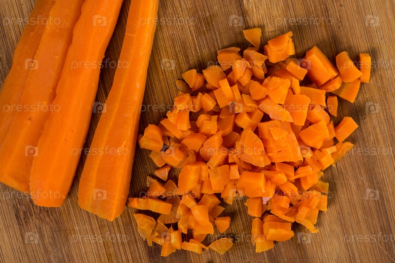 Нарезанная морковь на деревянной доске