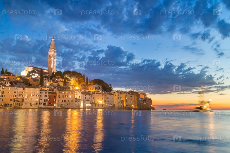 Прибрежный город Ровинь, Истрия, Хорватия на закате