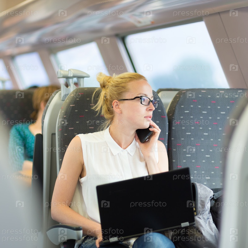 Деловая женщина работает во время поездок на поезде