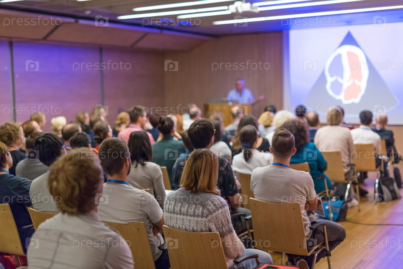 Аудитория в лекционном зале на научной конференции