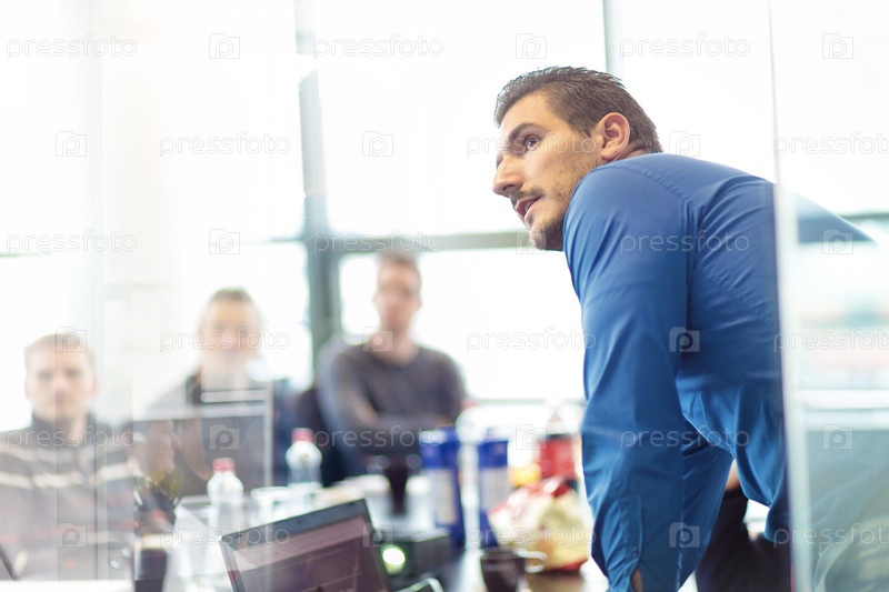 Бизнесмен делает презентацию в офисе