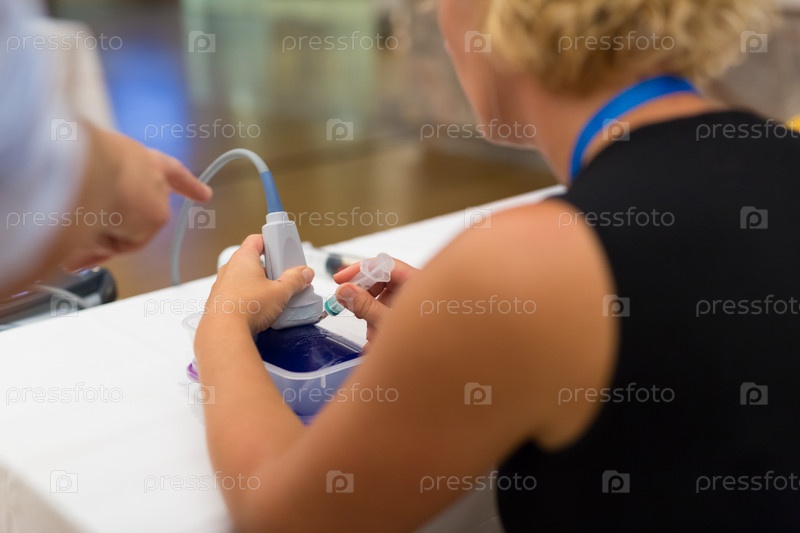 Студент-медик учится использовать ультразвуковой сканер