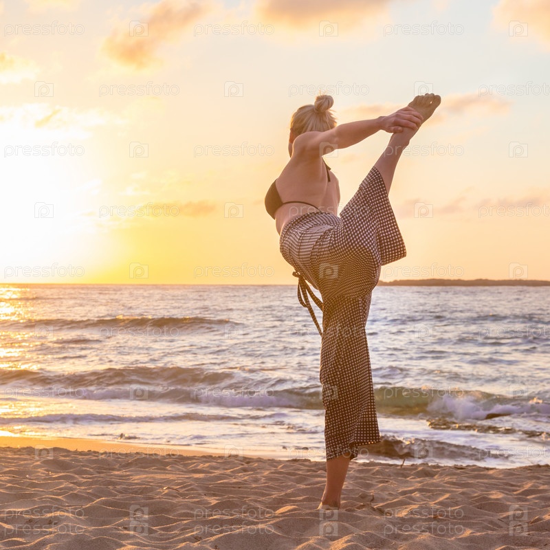 Йога на морском пляже на закате