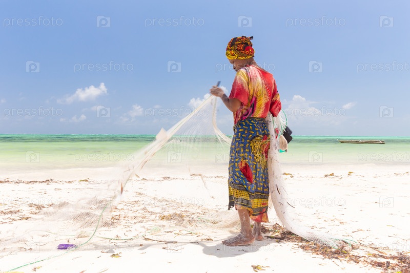 Традиционная африканская деревенская рыбалка на пляже Пайе, Занзибар, Танзания
