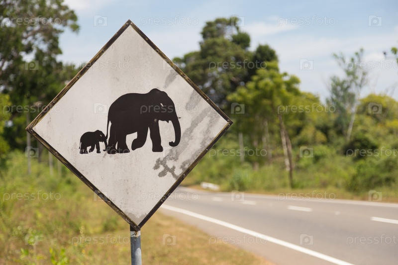 Дорожный знак в Шри-Ланке. Осторожно, слоны пересекают дорогу