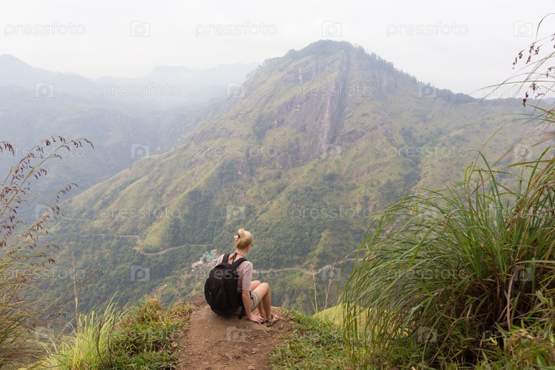 Наслаждающийся прекрасным видом на чайные плантации, Шри-Ланка