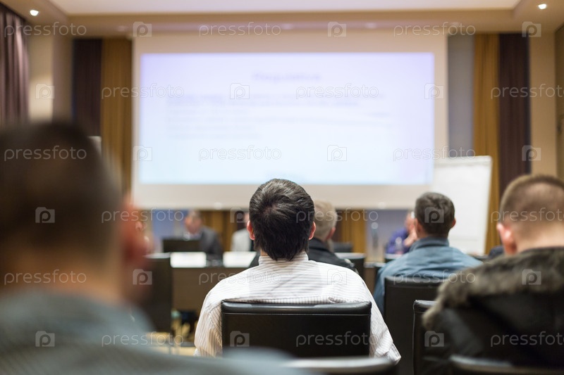 Аудитория в лекционном зале принимает участие в деловой конференции