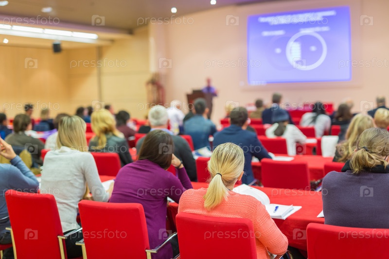 Аудитория в лекционном зале на научной конференции