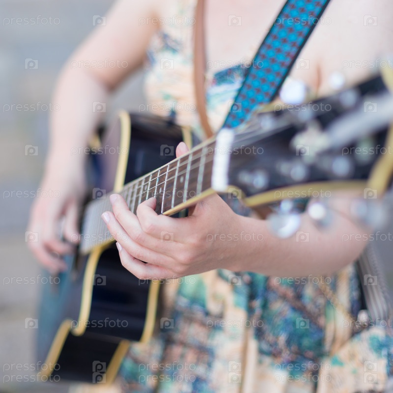 Уличный музыкант играет на гитаре