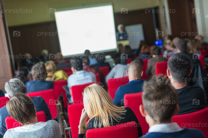 Аудитория в лекционном зале на научной конференции