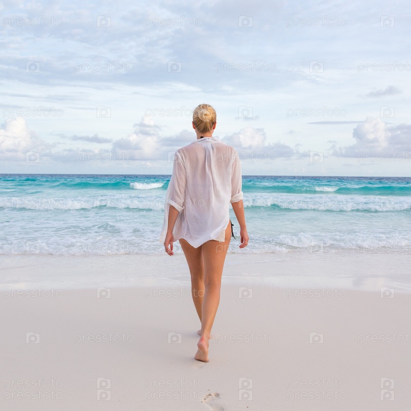 Женщина на летних каникулах на тропическом пляже острова Маэ, Сейшельские острова
