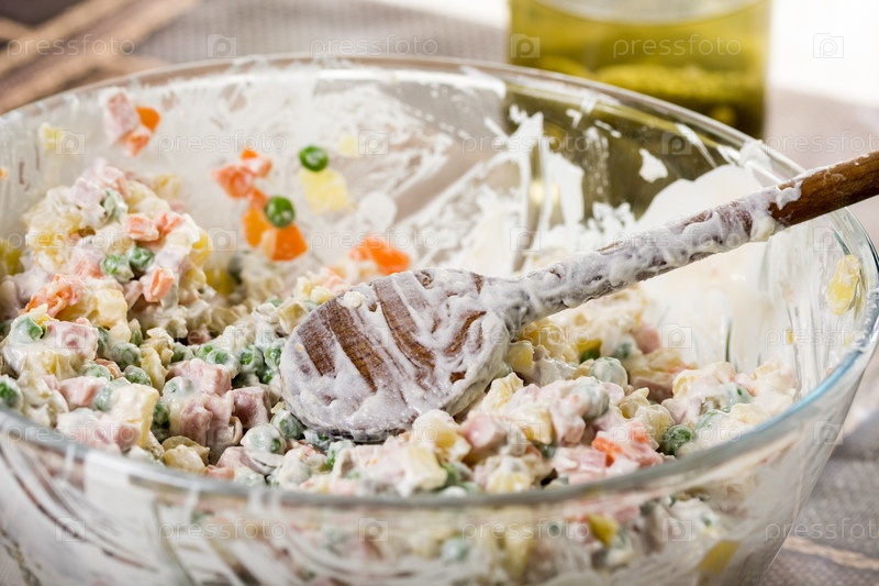 Деревянная ложка в русском салате