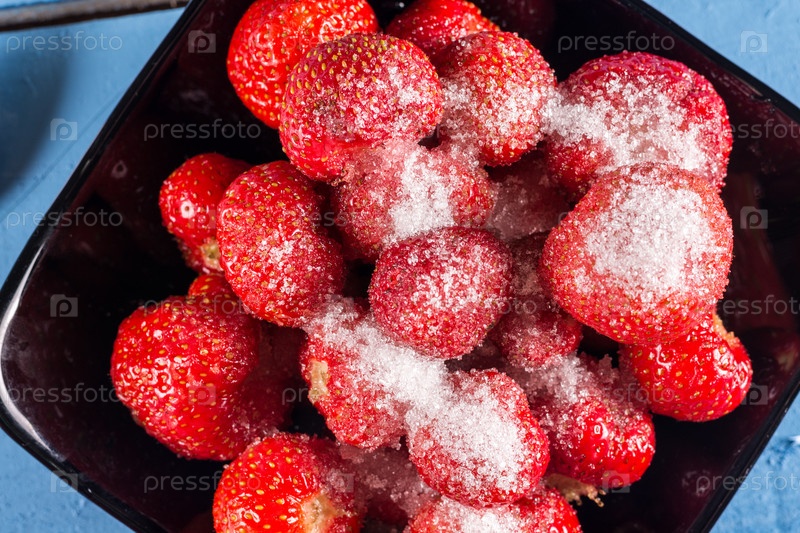 Свежая клубника с сахаром в миске