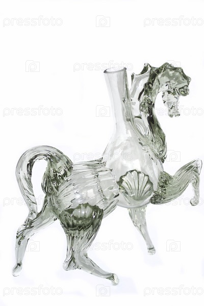 Стеклянная статуэтка в виде лошади на белом фоне