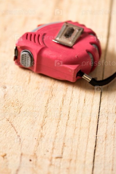 Красный строительный метр на деревянных досках