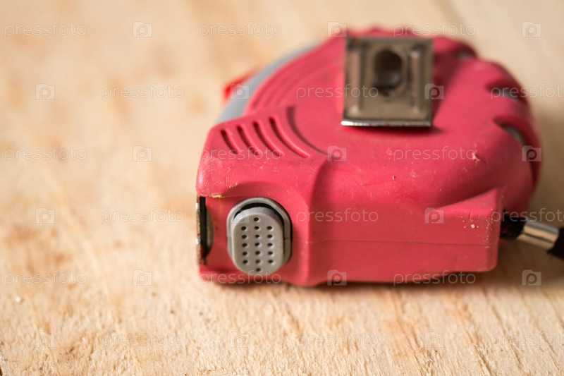 Красный строительный метр на деревянных досках