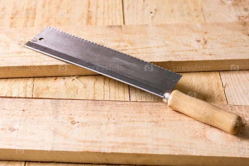 Ручная пила на фоне деревянных досок