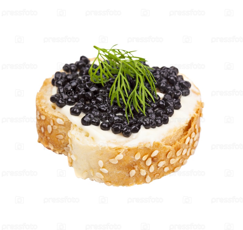 Бутерброд с черной икрой, изолированный на белом фоне