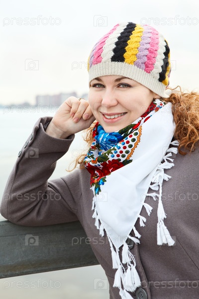 Портрет счастливой европейской девушки на набережной