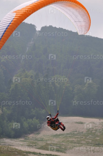 Человек летит с парашютом во время занятий параглайдингом на природе