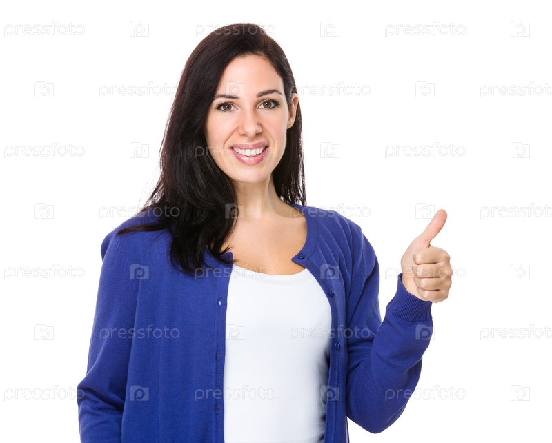 Молодая женщина с большим пальцем вверх