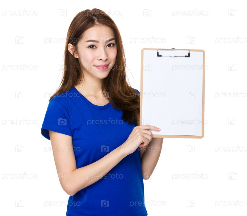 Женщина показывает пустую планшетку