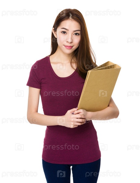 Азиатская женщина держит папку