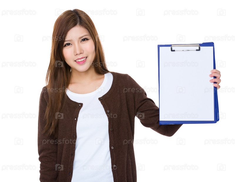 Женщина показывает пустую планшетку