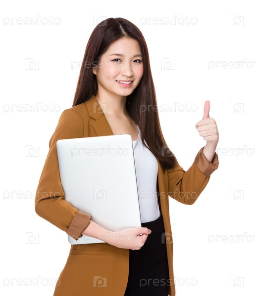 Бизнесмен с ноутбуком и пальцем вверх