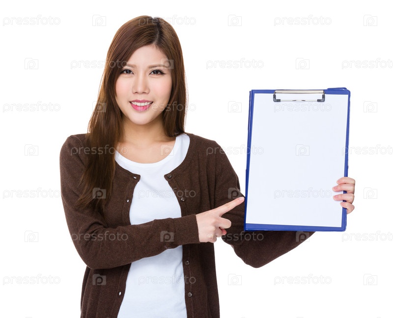Женщина показывает пустую планшетку