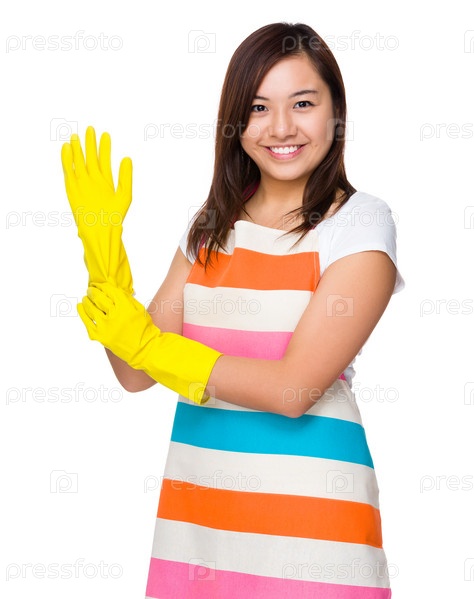 Молодая девушка в резиновых перчатках