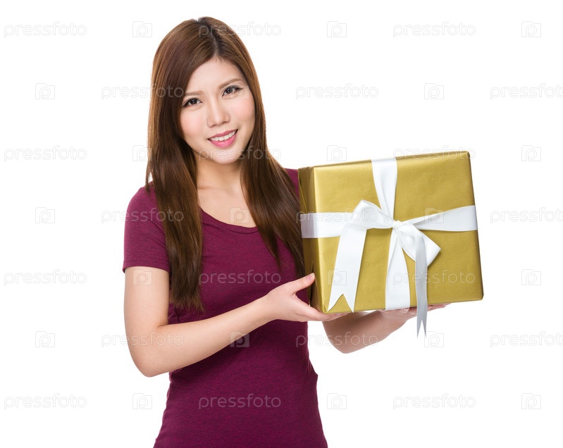 Азиатская женщина с подарком