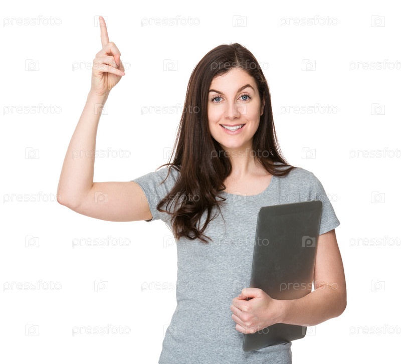 Женщина с ноутбуком и пальцем вверх