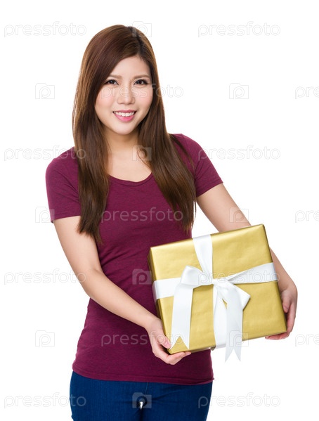 Молодая женщина с подарочной коробкой