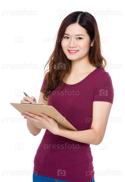 Молодая женщина с планшеткой