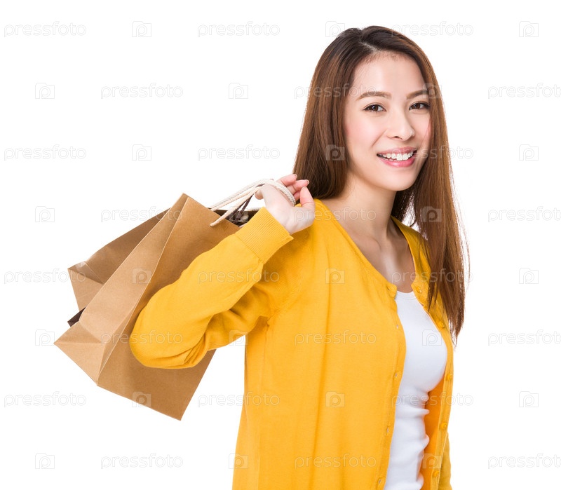 Женщина, держащая бумажный пакет